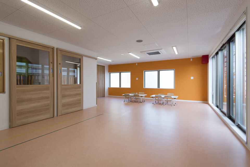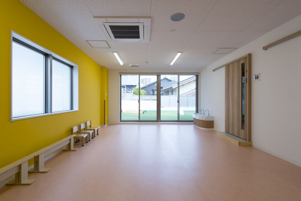 フラットな保育スペースで事故、ケガを防止